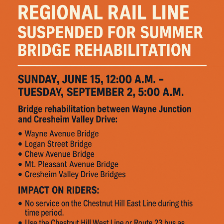 SEPTA to Suspend Chestnut Hill East Regional Rail Line for Summer Bridge Rehabilitation